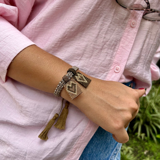 Pulsera tejida Macramé Ocre y Café