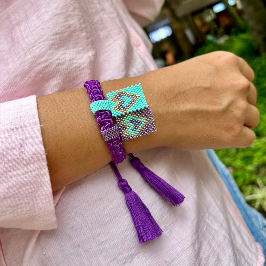 Pulsera tejida Macramé Morado y turquesa